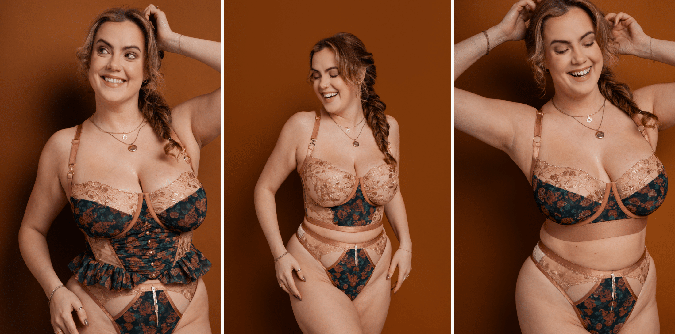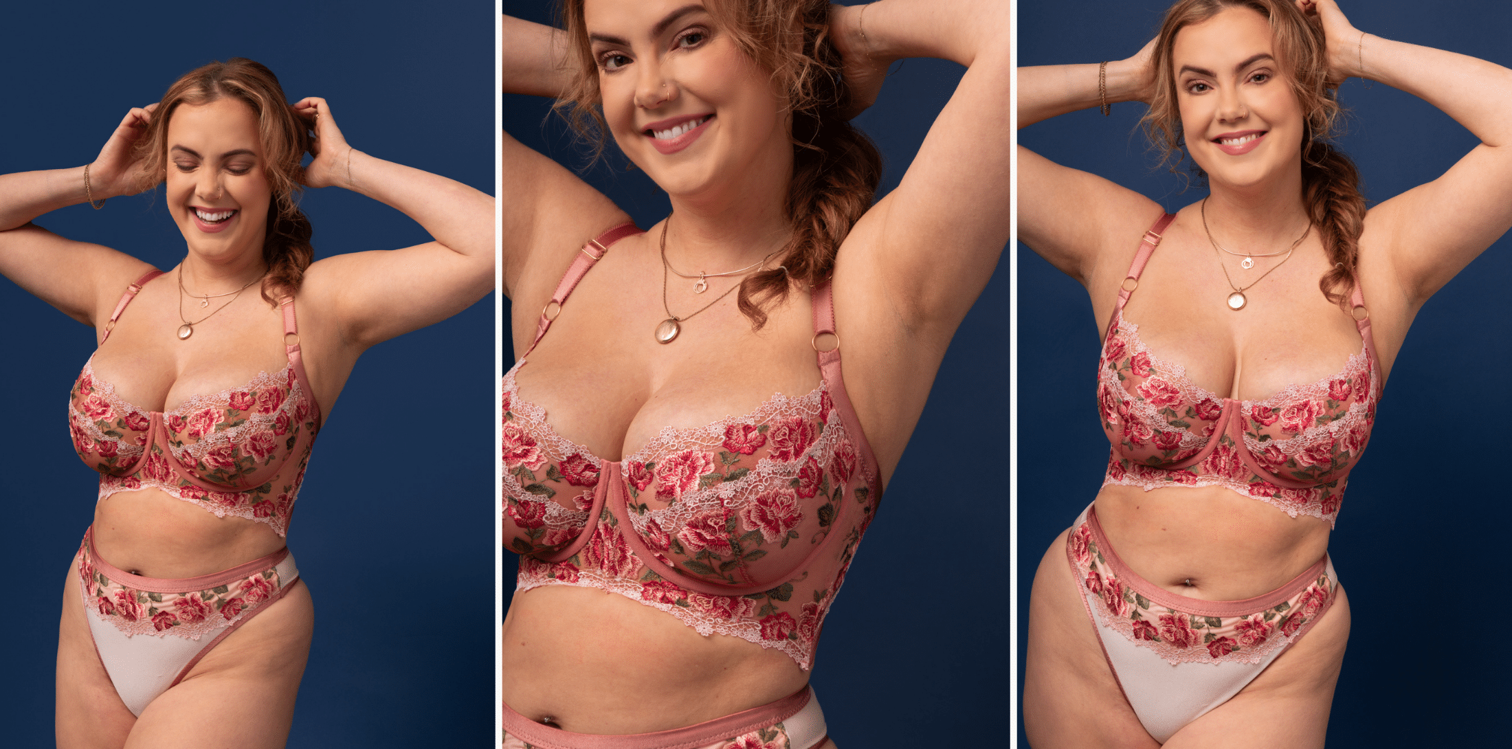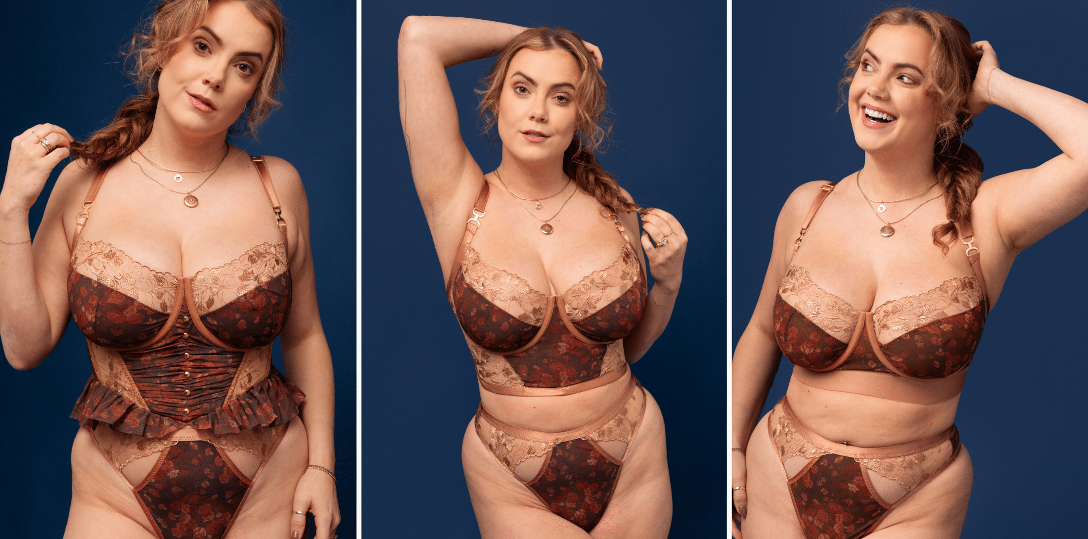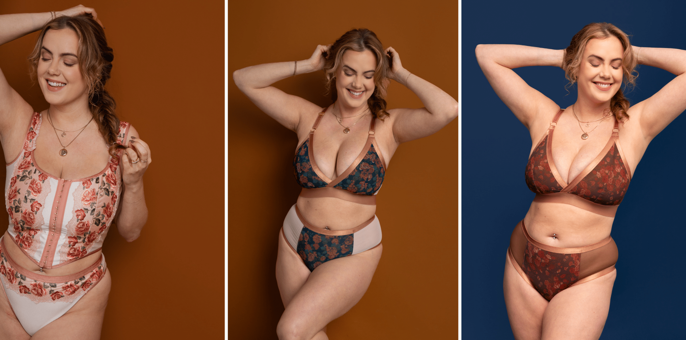 On the right, you’ll see the Rey underwire bra in its original form – classic and timeless. In the center is a longline version of the Rey bra, created by using the frame pieces from the Godiva bodysuit to give it that extended silhouette. I cover exactly how to achieve this variation in our step-by-step sew along – click here to watch all the sew alongs featured in Sew Lingerie.