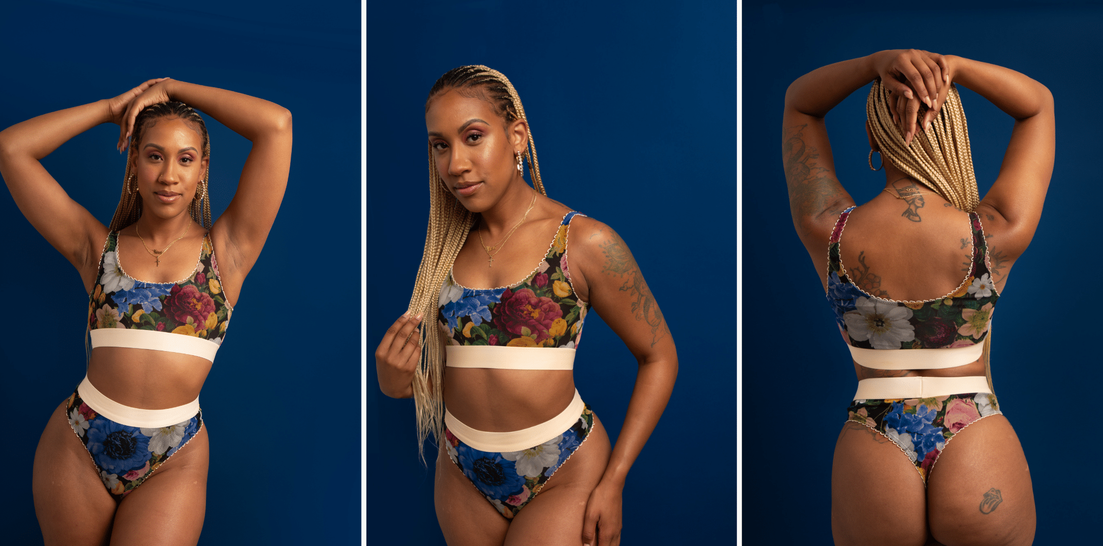 Let’s kick things off with the star of this collection – the Rey underwire bra and/or the Godiva bodysuit (frame pieces only) from Madalynne’s book, Sew Lingerie! One of the best parts about this DIY kit is its versatility – there are so many ways to sew it, and we made a few versions for the product images.
