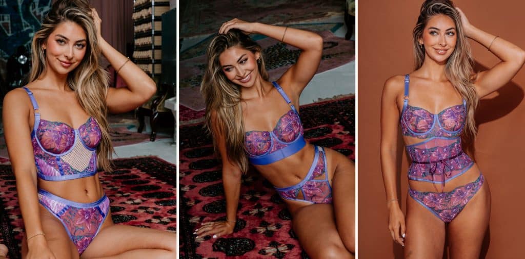 The is usually the case, the Rey underwire bra from Madalynne’s book, Sew Lingerie, was the star of this collection. One of the best parts about this DIY kit is its versatility. There are so many ways to sew it, and we made a few versions for the product images. One of them is a variation used a pre-pleated deadstock fabric. In the video below, I walk through how to make the changes using that pre-pleated fabric. In previous sewing guides, I broke down exactly which fabrics were used and where—but since this DIY includes several variations, listing them all could get a bit overwhelming. Instead, I’ll focus on highlighting just the variation.