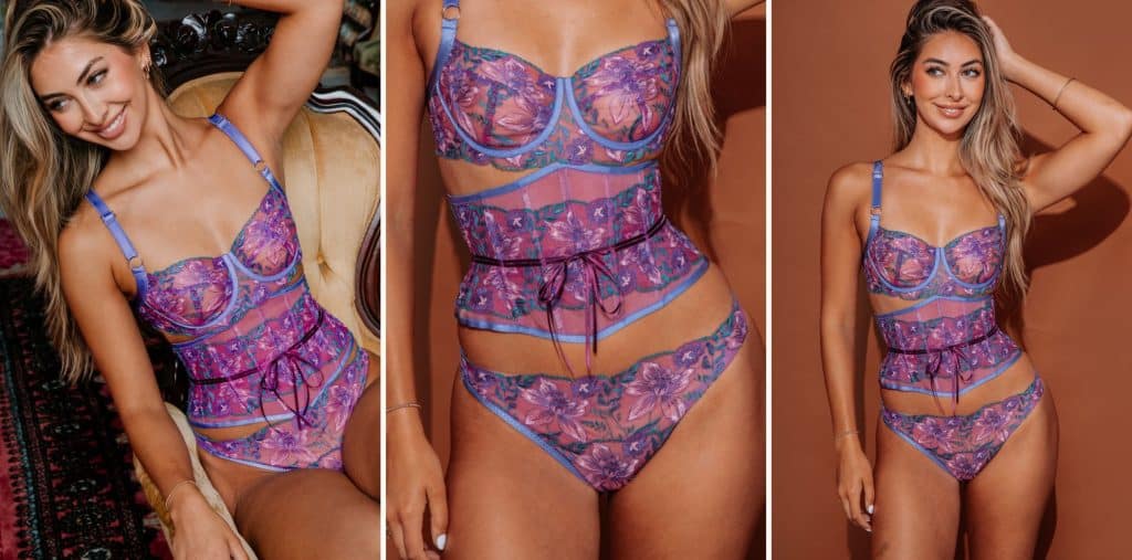 Tonika Panty: You could use several Madalynne patterns for the matching thong. The panty in the photos is the Tonika, but the Buffy or Odessa, or Millie from Sew Lingerie could be used.