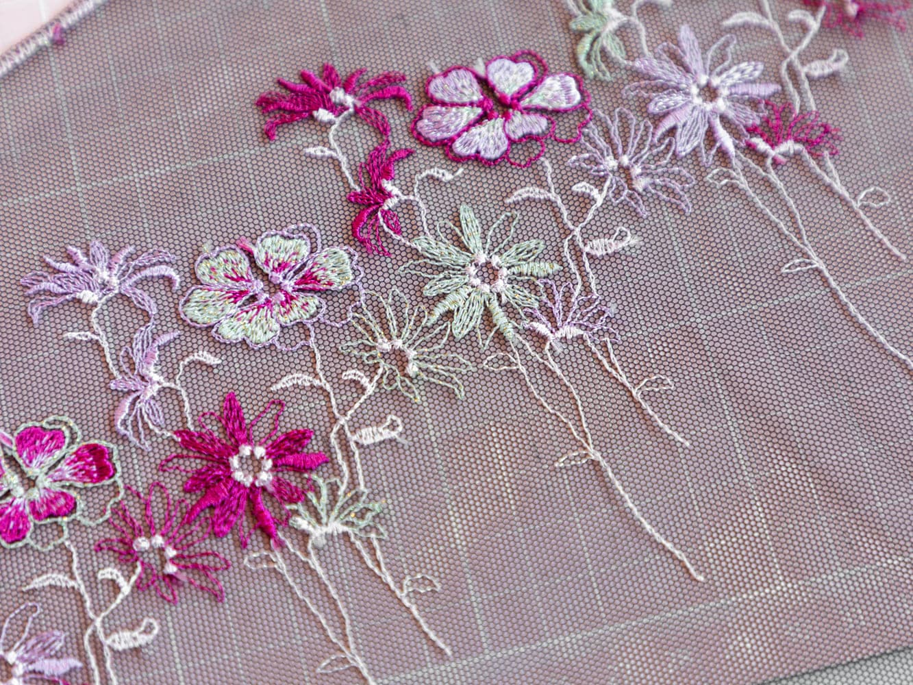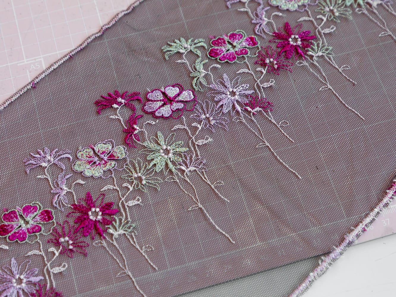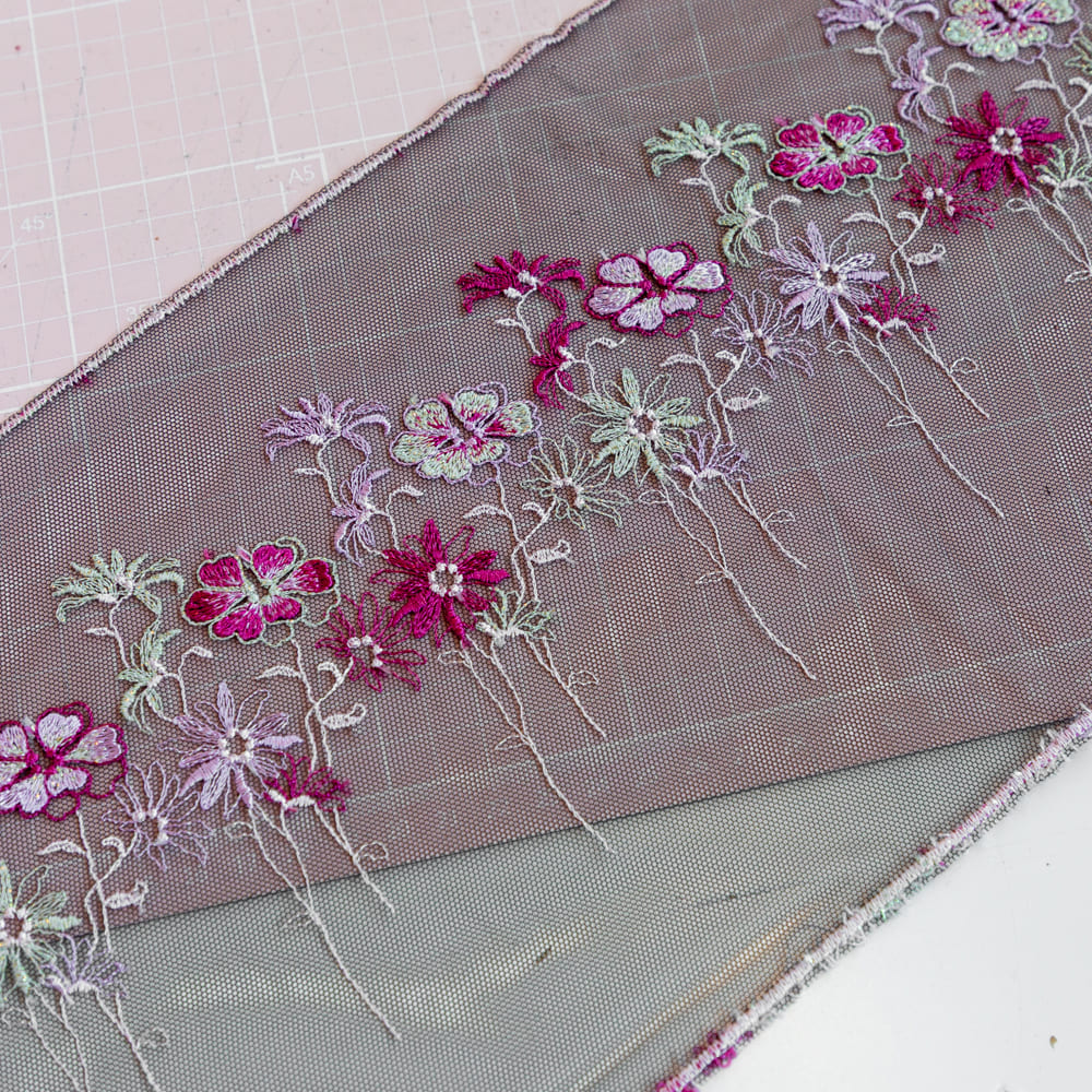 1 YD Magenta + Lilac Floral Embroidered Tulle Lace