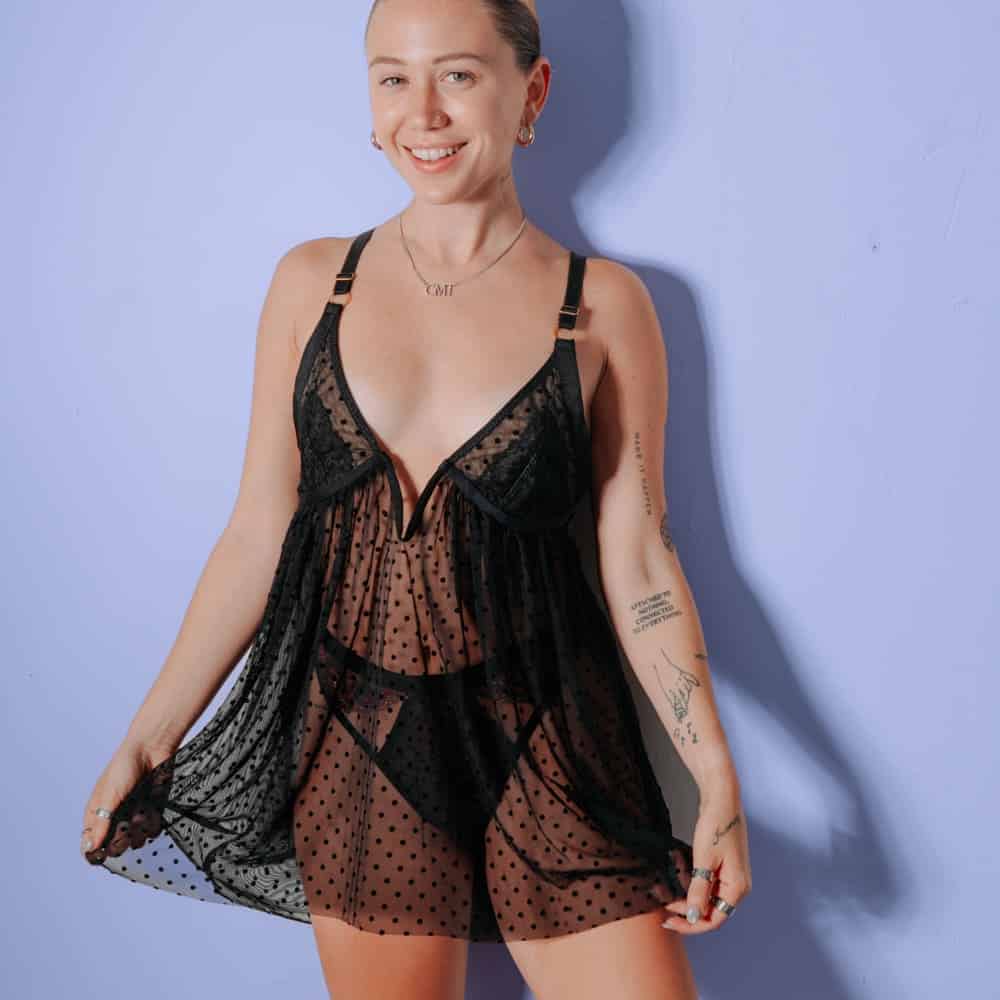 1 yard black Swiss dot stretch mesh (main + combo fabric)
